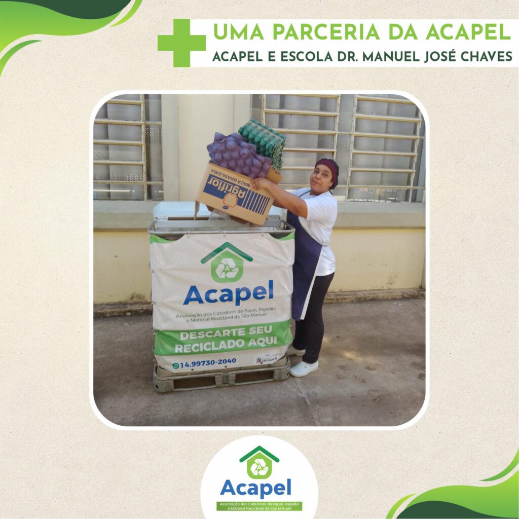 A Escola Dr. Manuel José Chaves é parceira da ACAPEL, seguimos juntas, unindo forças na coleta seletiva. ♻️